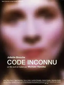 Code Unknown (French: Code inconnu : Récit incomplet de divers voyages, lit. 'Unknown code: Incomplete account of various travels') is a 2000 film directed by Michael Haneke. Most of the story occurs in Paris, France, where the fates of several characters intersect and connect.