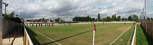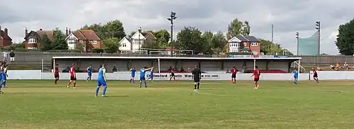 The club originally played at Myneer Park, before moving to Barnard Field on Pointwell Lane for the 1880–81 season.[1] The following season saw the club move to Highfields Farm Park, where they played until relocating to Fabians Field on Colne Road in 1890. In 1895 the club returned to Highfields.[1] After being given notice to leave the ground in 1960, land for a new ground on West Street was offered to them on a leasehold basis, with £2,000 raised to prepare it for the club.[1] A pavilion was opened in 1961, a stand in 1964 and a clubhouse in 1971, at which point the club moved its headquarters from the Chapel Hotel.[10] Floodlights were installed in 1967.[10] When the landowner decided to sell the site in 1981, the club raised enough money to purchase it.[1]