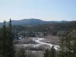 Along the cobble-bedded, irregularly meandering river, abandoned channels have created low-lying areas of wetland. Valley walls are primarily formed of till overlying bedrock.[12] The installation of revetments over the past century has restricted the meandering.[13] The river passes through two biogeoclimatic zones. In the upper reaches, it passes through the Interior Douglas Fir Zone. On entering the Coldwater Valley bottom, the region changes to the drier Ponderosa Pine/Bunch Grass Zone.[7] The route includes the Coldwater River Park (near Juliet)[10] and only one canyon (7-kilometre (4 mi) length, north of Brodie).[14]