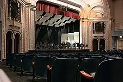 The Bardavon 1869 Opera House /ˈbɑːrdəvɒn/, in the downtown district of Poughkeepsie, New York, United States, is the oldest continuously operating theater in New York State. Designed by J.A. Wood, it was built in 1869 and served as a venue for various performing arts, community meetings, and celebrations until 1923; it largely resumed this heritage by becoming a general performing-arts facility in 1976.[2] In the interlude period from 1923 to 1975, it served as a cinema, although there were some live performances, especially vaudeville, during this period.[2] Originally called the Collingwood Opera House after its owner and operator James Collingwood, the theater featured an unusual two-stage dome.[3] Between 1869 and 1921, many notable figures of the day graced the Bardavon's stage, including Sarah Bernhardt and John Barrymore.[4]