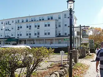 Extending southward from the eastern end of the main hotel (behind the church, as seen from Shore Road) is a modern two-story motel block, built in 1983. To the east of this building, near its southern end, stands a second two-story motel structure, oriented east–west, that was built about 1961. Just north of that is a c. 1900 Shingle style cottage, 1+1⁄2 stories in height, that faces eastward toward the ocean. This house was originally the residence of the hotel proprietor. The hotel swimming pool is located just east of the main hotel and north of the 1983 motel block.[2]