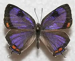 The Colorado hairstreak (Hypaurotis crysalus) is a montane butterfly native to oak scrubland in the southwestern United States and northern Mexico. It was designated the state insect of Colorado in 1996.[2] It is the only species in the genus Hypaurotis.[3]