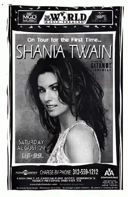 - ^ "Shania Twain will face her critics on the road starting in May". Lewiston Morning Tribune. Lewiston, Idaho. March 18, 1998. p. 14A. Retrieved March 24, 2011.
