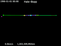 ![]() Comet Hale–Bopp, shortly after passing perihelion on April 4, 1997 | |