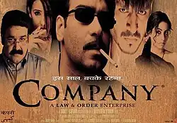 Company is a 2002 Indian Hindi-language crime film directed by Ram Gopal Varma and written by Jaideep Sahni. The film stars Mohanlal, Ajay Devgan, Vivek Oberoi, Manisha Koirala, Antara Mali, and Seema Biswas. It marks Mohanlal's debut in Hindi cinema. It is the second film of Ram Gopal Varma's gangster trilogy and a sequel to Satya (1998). Company follows Chandu, a henchman of a gangster named Malik, with whom he forms a rapport that eventually falls apart after tension arises between them.