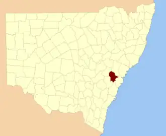 Cook County was one of the original Nineteen Counties in New South Wales and is now one of the 141 cadastral divisions of New South Wales. It includes the area to the west of Sydney in the Blue Mountains, between the Colo River in the north, and the Coxs River in the south and west, encompassing Lithgow, Mount Victoria, Katoomba, Wentworth Falls, Lawson and most of the other towns in the Blue Mountains. The Nepean River is the border to the east. Before 1834, the area was part of the Westmoreland, Northumberland and Roxburgh counties.[1]