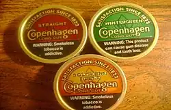 Copenhagen is a brand of dipping tobacco made by the U.S. Smokeless Tobacco Company. As with all tobacco products, it is addictive and contains several chemicals that are known carcinogens.