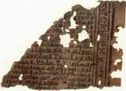 There is a fragmentary 13th-century manuscript in Arabic in Coptic script containing some of the Sayings of the Desert Fathers. It provides valuable information about the vernacular pronunciation of Arabic in Egypt at that time.[20] The same practice in the case of Syriac script is known as Garshuni. The Copto-Arabic Sayings was probably created by one who spoke Arabic but was either educated in and more comfortable writing in Coptic or else saw Coptic script as the prestige written form for a religious work.[21]