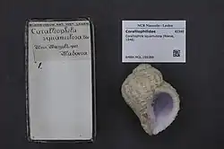 - ^ a b MolluscaBase (2018). Coralliophila squamulosa (Reeve, 1846). Accessed through: World Register of Marine Species at: http://www.marinespecies.org/aphia.php?p=taxdetails&id=549860 on 2019-01-06