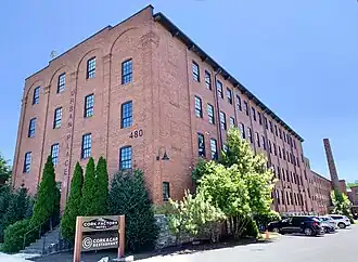The property was operated as a cork factory dating to 1865 and was acquired in the late 19th century by Armstrong Cork Co., later renamed Armstrong World Industries.[1] In 1929, Armstrong consolidated its cork operations at the site, making Lancaster "the 'cork capital' of the world".[2] At that time, the "Cork Works" on New Holland Avenue manufactured a wide array of cork products, including soles and heels for shoes and cork-lined metal tops for soft drink bottles.[3] The company's linoleum manufacturing business developed using by-products from cork manufacturing. The plant was later used for closure and plastic container manufacturing and became known as the Lancaster Closure Plant.[4]