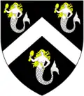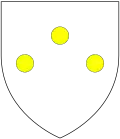Sables, Fifteen bezants or, five, four, three, two, one | 15th century (escutcheon)[10] 1968 (greater version)[11] |