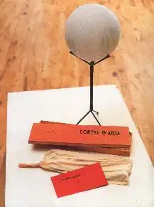 Corpo d'aria ("Body of Air"; plural Corpi d'aria) is an artist's multiple by the Italian artist Piero Manzoni. Manufactured between October 1959 and March 1960, the pieces are a box, a tripod base, a deflated balloon and a mouthpiece. 45 copies were made and sold at 30,000 lire each. Originally, any buyer could ask Manzoni to inflate the balloon himself, but would be charged an extra Deutschmark for every litre of air expanded. When fully expanded, the balloons measured 80 cm in diameter.[1]