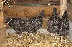The Coucou des Flandres, Dutch: Vlaamse Koekoek, is an endangered Belgian breed of domestic chicken. It may have a common origin with the Malines from the area of Mechelen (French: Malines), in the province of Antwerp in Flanders, or may indeed represent the original type of that breed before it was cross-bred in the nineteenth century with various different types of imported Oriental chicken. By the time of the First World War it had disappeared; it was re-created in the years before the Second World War. It is critically endangered in Belgium, but more numerous in Picardy in France. It may also be known as the Poulet de Dendre, for the Dender river in its area of origin.[3]