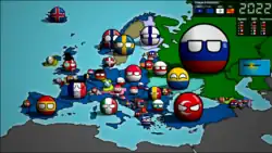 Countryballs, also known as Polandball,[a] is a geopolitical Internet meme, predominantly used in online comics strips in which countries or political entities are personified as anthropomorphic balls with eyes, decorated with their national flags. Comics feature the characters in various scenarios, mostly poking fun at national stereotypes, international relations, and historical events. Other common features in Countryball strips include non-English countries speaking in broken English[1] — with vocabularies of their national languages included, political incorrectness, and black comedy. Strips are generally created using Microsoft Paint or more advanced graphic art software, often made to intentionally look crudely drawn.