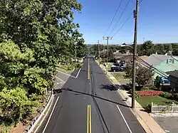 CR 535 is now traversing Cranbury, traveling for a just under three miles (4.8 km) before reaching the township's Main Street. It turns left toward the downtown area, while CR 539 comes from the right on South Main Street and ends while CR 685 continues east on Old Trenton Road to its terminus at US 130. Once through Cranbury, CR 535 continues north on South Main Street, becomes North Main Street, turns right onto Plainsboro Road, turns left onto Maplewood Avenue, another right onto Half Acre Road, and shortly thereafter, merges into another short concurrency, this time with US 130. After less than one-tenth mile (0.16 km), it breaks off to the right, taking a north-by-northeast path toward the New Jersey Turnpike and the Lower Raritan River Valley while the southbound direction follows the short concurrency with US 130 and turns slightly southwest on Maplewood Avenue.[1][3]