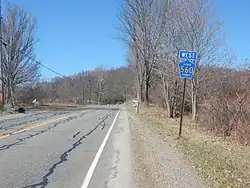 County Route 560 (abbreviated CR 560 and locally known as Tuttles Corner Road) is a county highway in the U.S. state of New Jersey. The highway extends 5.05 miles (8.13 km) from U.S. Route 206 and County Route 521 in Sandyston Township. CR 560 ends at the Pennsylvania state line, where it becomes Pike County Quadrant Route 2019, which connects to Pennsylvania Route 739. CR 560's entire length is in Sandyston. However, CR 560 does pass through the hamlet of Layton.