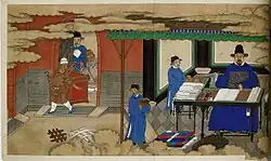 The magistrate was the hero in much popular fiction. The "detective story," for instance, in China took the form of the gong'an, or “court case,” in which the protagonist is not a private detective or police officer but the county magistrate, who is investigator, prosecutor, and judge. The magistrate solves a crime which has already been described to the reader, so that the suspense comes not from discovering the criminal but from seeing how the magistrate solves the crime through clever stratagems.[30] Among these magistrate-detectives were the historical Tang dynasty official Di Renjie, who inspired a series of Judge Dee stories, and the Song dynasty official, Bao Zheng the hero of a set of stories and operas.