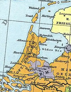 The County of Holland and other nearby territories had a considerable amount of independence from Holy Roman Empire leadership in the 10th and 11th centuries.[1] Until at least the second half of the 10th century, Holland's leadership valued secular principles, a contrast to the nearby Prince-Bishopric of Utrecht.[1]