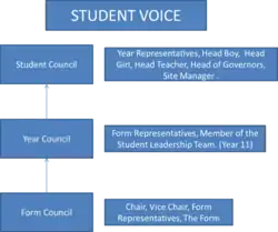 Court Moor's Student Council is made up of form representatives, year representatives, the head boy and the head girl. Student Council meetings are attended by two representatives from each year, the head boy, the head girl and the permanent teacher representatives - the head teacher, chairman of the governors and the site manager.
