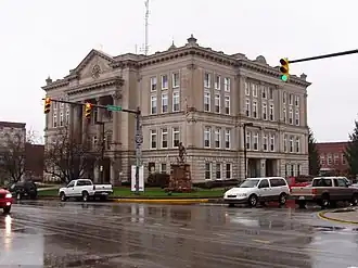 - ^ "Indiana State Historic Architectural and Archaeological Research Database (SHAARD)" (Searchable database). Department of Natural Resources, Division of Historic Preservation and Archaeology. Retrieved June 1, 2016. Note: This includes Charles R. Niehaus (September 1983). "National Register of Historic Places Inventory Nomination Form: Courthouse Square Historic District" (PDF). Retrieved June 1, 2016., site map, and Accompanying photographs.