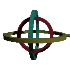 Gimbal lock occurs because any map T3 → RP3 is not a covering map. In particular, the relevant map carries any element of T3, that is, an ordered triple (a,b,c) of angles (real numbers mod 2π), to the composition of the three coordinate axis rotations Rx(a)Ry(b)Rz(c) by those angles, respectively. Each of these rotations, and their composition, is an element of the rotation group SO(3), which is topologically RP3. This animation shows a set of three gimbals mounted together to allow three degrees of freedom. When all three gimbals are lined up (in the same plane), the system can only move in two dimensions from this configuration, not three, and is in gimbal lock. In this case it can pitch or yaw, but not roll (rotate in the plane that the axes all lie in).