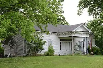 The Cox House is a historic house on Bridge Street in Morrilton, Arkansas. It is a small but architecturally eclectic single-story wood-frame house, with a gable roof and weatherboard siding. It has a projecting gabled porch, with bargeboard on the gable rake edges, brackets on the eaves, low-pitch gabled cornices over the front windows, and a broad two-leaf entrance with sidelight windows. It was built in 1875 by Hance Wesley Burrow, a farmer and veteran of the American Civil War.[2]