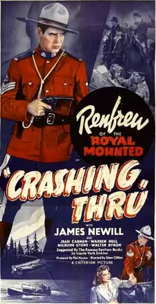 Crashing Thru is a 1939 American northern action film directed by Elmer Clifton and starring James Newill, Jean Carmen and Warren Hull.[1] It is based on the 1935 novel Renfrew Rides the Range, the seventh in the popular Renfrew of the Royal Mounted series by Laurie York Erskine.