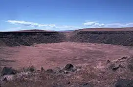 Crater Rings are adjacent, symmetrical volcanic pit craters in the Western Snake River Plain about eight miles northwest of Mountain Home, Idaho. They are one of few examples of volcanic craters in the continental United States.[1] The craters are at the summit of a broad shield volcano. The eastern crater is about 3000 ft across and 350 ft deep. The western is 2500 ft across and 300 ft deep. The craters are probably former lava lakes similar to Halemaʻumaʻu of the Kīlauea volcano of Hawaii. The volcano is the youngest of the shield volcanoes near Mountain Home and is estimated to be less than two million years old.[2]