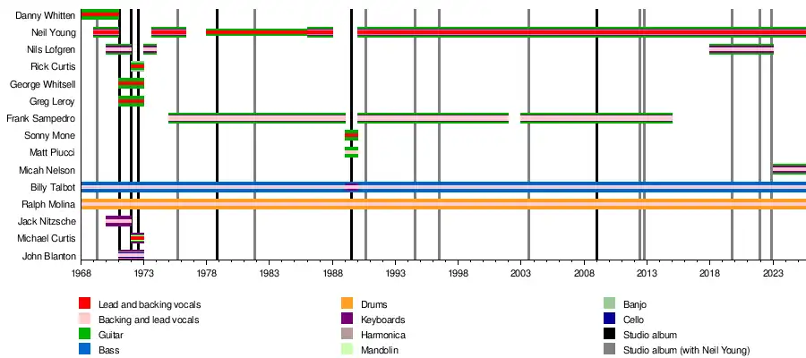 - Neil Young – lead vocals, lead guitar, keyboards, harmonica (1969–1970; 1973–1976; 1978–1987; 1990–present)