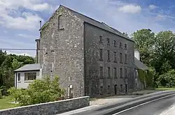 The mill is constructed of limestone - ashlar on the façade and coursed elsewhere. The mill's entry in the National Inventory of Architectural Heritage (NIAH) describes such an ashlar façade as "a rarity, suggesting that the landowner spent considerable money on building the mill".[2] The window sills are tooled limestone, with round-headed windows at the original attic level of gables. The NIAH entry notes that the appearance of the mill is "reminiscent of the façade of a country house and the doorcase may be compared to those of the Slane Mill (c.1760), Co. Louth".[2]