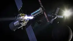 The Asteroid Redirect Mission (ARM), also known as the Asteroid Retrieval and Utilization (ARU) mission and the Asteroid Initiative, was a space mission proposed by NASA in 2013.[16] The Asteroid Retrieval Robotic Mission (ARRM) spacecraft would rendezvous with a large near-Earth asteroid and use robotic arms with anchoring grippers to retrieve a 4-meter boulder from the asteroid. It would then be visited by the Orion spacecraft in lunar orbit on Exploration Mission 5 in the mid 2020s.[18] It was later changed so that the asteroid would be brought to the Exploration Gateway Platform where the Orion would then visit it. ARM was cancelled by the Trump administration in 2017.[19]