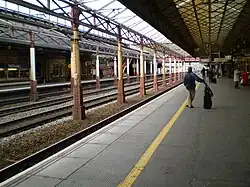 Crewe railway station serves the railway town of Crewe, in Cheshire, England. It opened in 1837 and is one of the most historically significant railway stations in the world.[3][4]