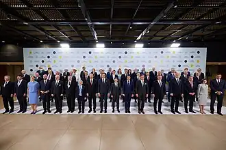 The Crimea Platform (Ukrainian: Кримська платформа, romanized: Krymska platforma; Crimean Tatar: Qırım Platforması) is a diplomatic summit initiated by Ukrainian President Volodymyr Zelenskyy in August 2021 and attended by delegations from 46 Western-aligned countries.[1][2] It is designed to be an international coordination mechanism to restore Russia–Ukraine relations by means of reversing the 2014 annexation of Crimea by the Russian Federation. The protection of the human rights of Crimean Tatars, environmental degradation and the stifling of trade in the Black and Azov Sea region are also matters discussed at the summit.[3]