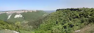 In his Fourth Turkish letter, Ogier Ghiselin de Busbecq (1522–1592) describes them as "a warlike people, who to this day inhabit many villages".[1] However, in the 5th century, the Ostrogothic ruler Theodoric the Great failed to rouse Crimean Goths to support his 488–493 war in Italy.[2][3] Aside from textual reports of the existence of the Goths in Crimea, both first- and second-hand, from as early as 850,[4] numerous archaeological sites also exist, including the ruins of the former capital city of the Crimean Goths: Doros (present-day Mangup). Furthermore, numerous articles of jewellery, weaponry, shields, buttons, pins, and small personal artefacts on display in museums in Crimea and in the British Museum have led to a better understanding of Crimean Gothia.