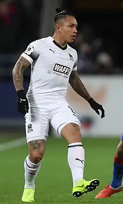 Cristian Leonel Ramírez Zambrano (Spanish pronunciation: [ˈkɾistjan raˈmiɾes]; born 12 August 1994) is an Ecuadorian professional footballer who plays as a left-back for Lokomotiv Moscow of the Russian Premier League.[2] Fast, intelligent, ambidextrous and a great dribbler are the qualities of Ramirez which has led to the foreign press comparing him to Roberto Carlos.[3][4][5][6][7][8][9]