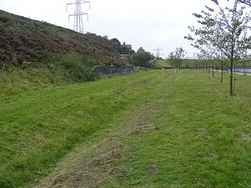 A local millowner, Brown & Co., donated £50 towards the cost of providing a station at Crowden. Plans were drawn up in April 1857, but the MS&LR decided that the sum of £400 was too much and dropped the idea; however, they did not return the donation. When Brown & Co. complained in May 1860 about their loss, the plan was revived and the station was built, with the MS&LR meeting the balance of the £450 total cost. George Benton of Glossop was contracted for the building work, but the necessary road improvements were provided by Manchester Corporation;[3] the station being adjacent to the dam at the lower end of the Woodhead Reservoir, which belonged to Manchester Corporation. The station was opened on 1 July 1861.[4]