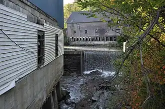 The Crystal Lake Falls Historic District covers several blocks of Barton village, located at northwest corner of Crystal Lake. It extends roughly along Water Street from Church to Main Street, along Main from Water to Duck Pond Road, and along West Street from Cemetery Road to Main Street. The latter areas is known colloquially as the "Brick Kingdom", and runs roughly parallel to Willoughby Brook, the outflow from Crystal Lake, which drops about 90 feet (27 m) in a series of falls. The earliest documented industrial activity on the falls began in the 1790s, with Asa Kimball starting a sawmill in 1798 and a gristmill in 1807 on the upper falls.[2] During the 19th century, factories clustered along Water Street, with a variety of manufacturing activities. Businesses located here manufactured piano works, furniture, ladies cotton lingerie and baseball bats. These mostly closed by the 1940s, with the last leaving in 1952.[3] The mills employed about 300 workers.[4]