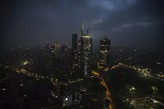 The borough was the hardest hit by the 1985 earthquake with 258 buildings completely crumbled, 143 partially collapsed, and 181 seriously damaged.[25] The result was the loss of 100,000 residents, just in the historic center.[21] Another area with major damage was Colonia Roma with a number of buildings collapsing completely.[26] Even areas that did not suffer significant damage, such as Colonia San Rafael, were affected when homeless from other parts of the borough moved in,[22] or Colonia Condesa, when wealthier residents moved out.[27] Because of the rent situation, most of the damaged structures were never fixed or rebuilt, leading to slums or garbage-strewn vacant lots.[21] As late as the 2000s, buildings damaged from the event have collapsed.[28][29] In 2003, the city government expropriated 64 properties thought to be in danger of sudden collapse due to damage suffered nearly 20 years earlier after a collapse of an apartment building in Colonia Vista Alegre,[29] but in 2010, an apartment building partially collapsed in Colonia San Rafael, due to the same cause.[28] Since the quake, the borough has invested in its own early warning system, which was created for it by UNAM.[30]