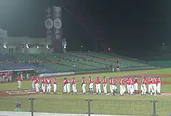 The Cuba national baseball team (Spanish: Selección de béisbol de Cuba) represents Cuba in baseball at regional and international levels. The team is generally made up of players from the domestic Cuban national baseball system, though it has at times included professional players who defected to the United States. Cuba was described in 2009 as a baseball powerhouse[2] and currently ranks 12th in World Baseball Softball Confederation's world rankings.[1]