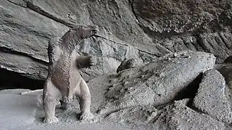 The cave is named after the large ground sloth Mylodon which has been found at the site. Other animals found at the site include the equine Hippidion, the saber-toothed cat Smilodon and the large camel-like ungulate Macrauchenia[3]