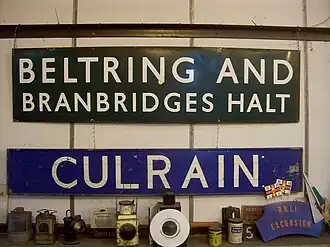 The original nameboard is now preserved at the Bredgar and Wormshill Light Railway, in Kent (see left).