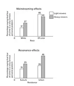 A representation of the effects of mainstreaming and resonance. Source: Adapted from Gerber et al., "The mainstreaming of America: Violence profile no. 11" Journal of Communication, vol. 7 (1980), p. 16, Figure 2. Reprinted by permission of John Wiley & Sons, Ltd.[33]