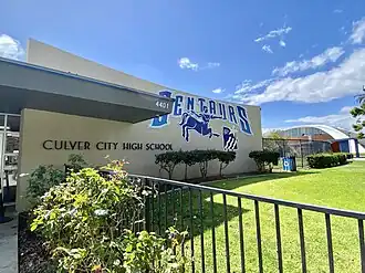 Culver City High School is the main public high school of the Culver City Unified School District (CCUSD) in Culver City, California. It was established in 1951.[2] The school's colors are blue and silver, and the mascot is the centaur. As of 2022, its enrollment was roughly 2,200.[3] is recognized as a California Distinguished School, earning the honor in 2005.[4] The Robert Frost Auditorium is located within the school grounds of Culver City High School.
