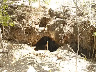 Cutta Cutta Caves are associated with Barrac Barrac, or Diver Duck dreaming creation stories by the local Jawoyn Indigenous people.[3] Other sources, such as Lonely Planet, claim Cutta Cutta is a Jawoyn word meaning "many stars", as they believe that caves are where the stars rest during the day;[4] however, there does not seem to be a specific name for the formations in the documented or oral history. Evidence of occupation by the Jawoyn people can be found throughout the park with a number of campsites and stone artifacts identified. At least one unnamed cave within the park shows evidence of man-made grooves on an interior wall some distance from the entrance,[3] although it is widely understood that the Jawoyn people did not regularly enter the deep caves.