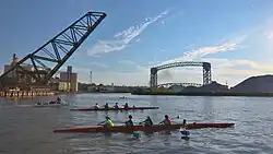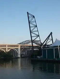 As Cleveland emerged as a major manufacturing center, the river became heavily affected by industrial pollution, so much so that it caught fire at least 14 times. When it did so on June 22, 1969, news coverage of the event helped to spur the American environmental movement.[8][9] For many Americans, the Cuyahoga's burning helped connect urban decay with the environmental crisis at the time in many American cities.[10] Since then, the river has been extensively cleaned up through the efforts of Cleveland's city government and the Ohio Environmental Protection Agency (OEPA).[11] In 2019, the American Rivers conservation association named the Cuyahoga "River of the Year" in honor of "50 years of environmental resurgence".[12][13]