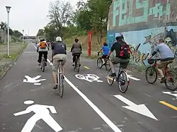 Detroit is flat with an extensive road network and a number of recreational and competitive opportunities for cycling. The city has invested in greenways and bike lanes[1] and other bicycle-friendly infrastructure. Bike rental is available from the riverfront and tours of the city's architecture can be booked.[2][3][4]