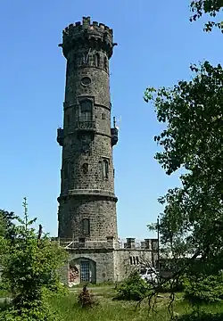 The observation tower is 33 m (108 ft) high, 153 steps lead to the observation deck. The tower offers a panoramic view over Bohemian and Saxon Switzerland, and Lusatian Mountains.[1]