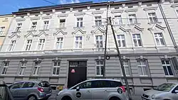 The tenement is being refurbished (in June 2025).[19] The facades of the wings stretching along both streets are decorated with pediments and cornices, while the ground floor is highlighted with bossage. Both individual entrances on the streets display adorned portals.[20] |