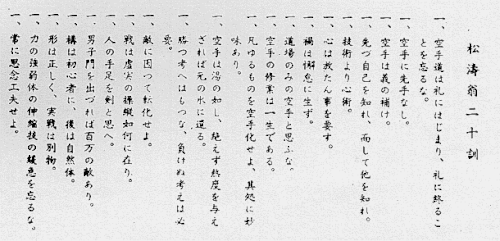7. ^ 日本空手松涛連盟(JKS) 道場訓解説 Archived August 30, 2010, at the Wayback Machine