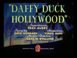 Daffy Duck in Hollywood is a 1938 Warner Bros. Merrie Melodies animated short directed by Tex Avery.[3] The cartoon was released on December 12, 1938, and stars Daffy Duck. The short is Avery's last Daffy Duck cartoon.[4]